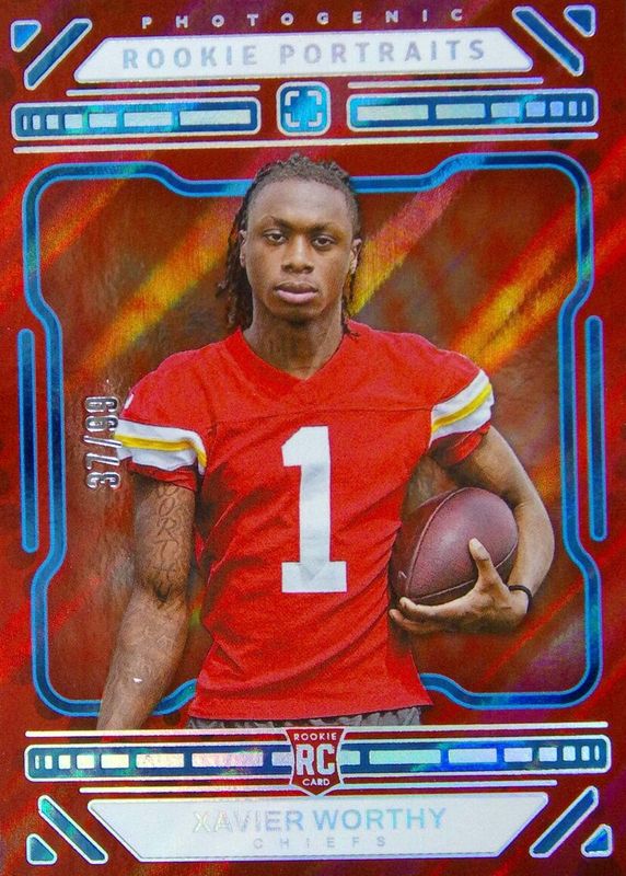XAVIER WORTHY 2024 Photogenic BLUE /99 Rookie Portraits RC SP Kansas City Chiefs