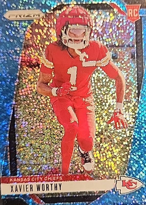 The Xavier Worthy 2024 Prizm #399 Blue Sparkle /96 Rookie card in Raw condition has moved down -$5.53 (-23.5%) in the last 30 days and was last sold for $17.99 .