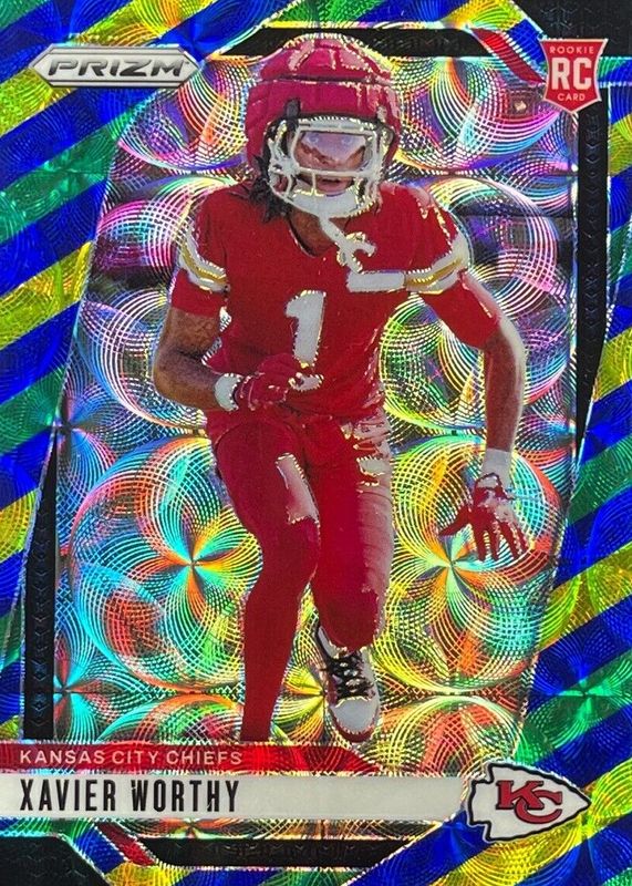 The Xavier Worthy 2024 Prizm #399 Choice Blue Yellow Green Rookie card in Raw condition has not changed in price in the last 30 days and was last sold for $46.16 .