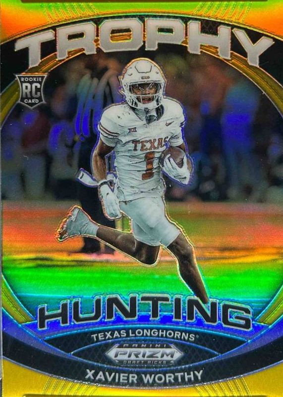 Xavier Worthy 2024 Prizm Draft Picks #TH-XWY Trophy Hunting - Gold /10 Rookie RAW Price Guide