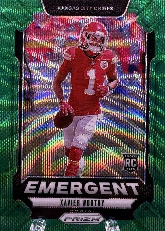 2024 Panini Prizm - Emergent Xavier Worthy RC #7 Green Wave Prizm Kansas City