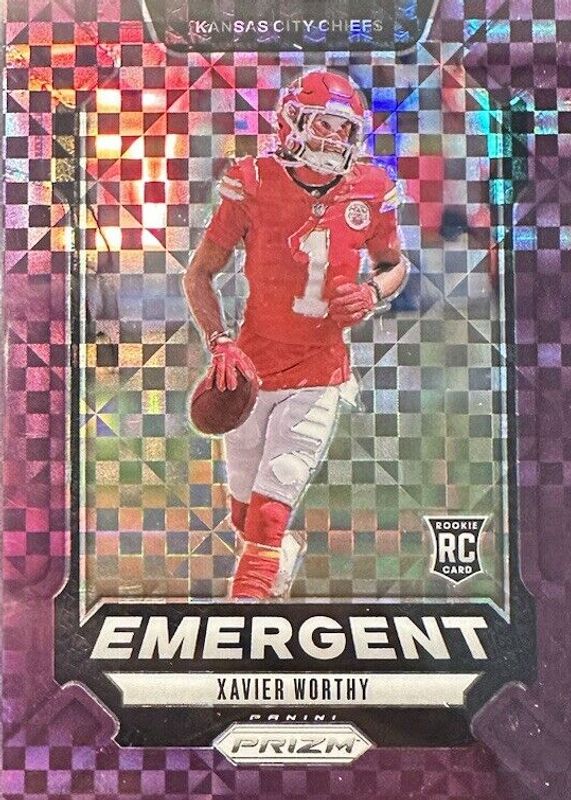 2024 Panini Prizm Xavier Worthy Emergent Purple Power RC #/49 Chiefs