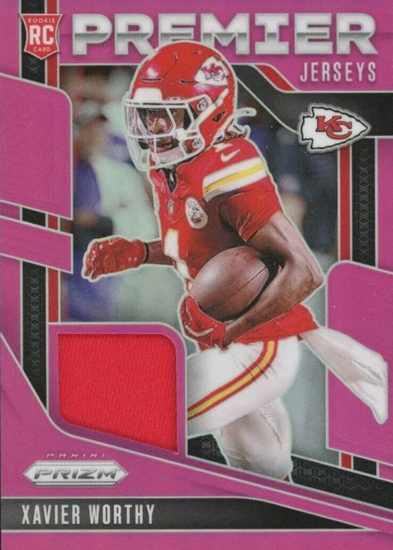 The Xavier Worthy 2024 Prizm #PJ-XWY Premier Jerseys - Pink Rookie card in Raw condition has moved down -$0.17 (-9.1%) in the last 30 days and was last sold for $1.69 .