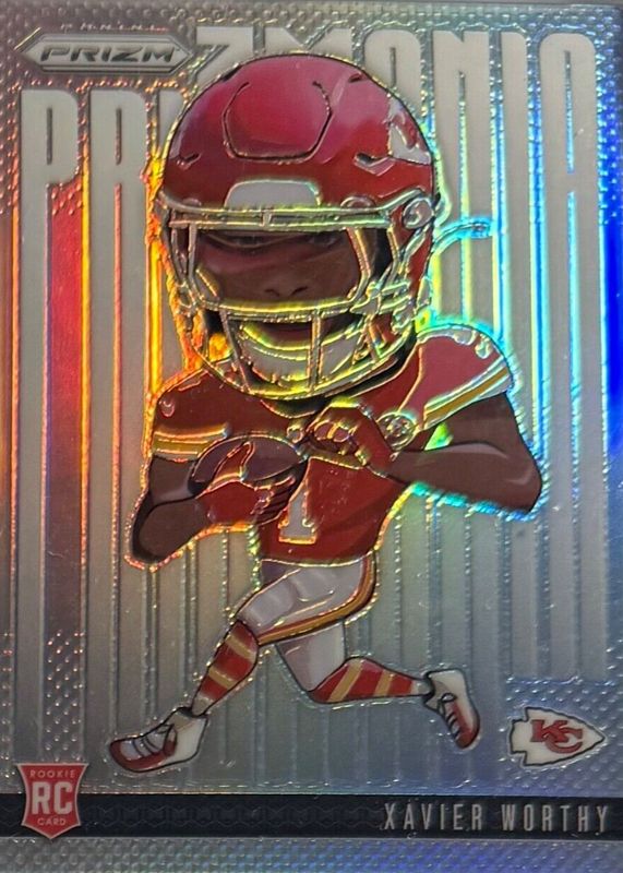The Xavier Worthy 2024 Prizm #7 Prizmania /(SSP) Rookie card in Raw condition has moved down -$140 (-33.7%) in the last 30 days and was last sold for $275.00 .