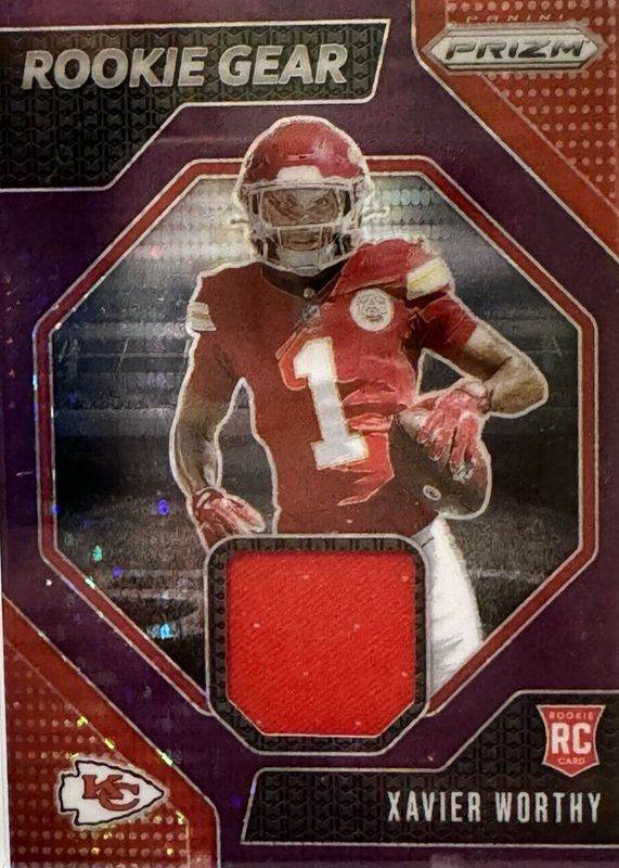 2024 Panini Prizm #RG-XWY Xavier Worthy Rookie Gear Purple Pulsar Chiefs
