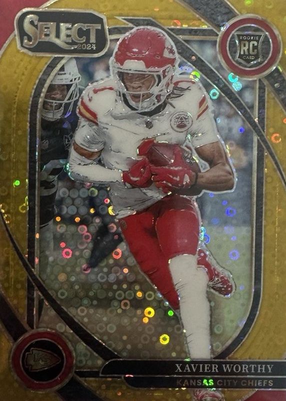 The Xavier Worthy 2024 Select #224 Club Level Gold Disco /10 Rookie card in Raw condition has not changed in price in the last 30 days and was last sold for $165.00 .