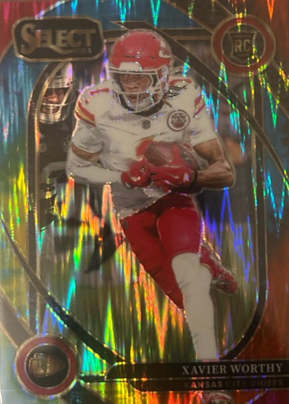 This card is 1 of 253 Xavier Worthy's card variations in the 2024 Select set being tracked by Sports Card Investor, including Club Level, Concourse, Field Level, Premier Level, and Suite Level.