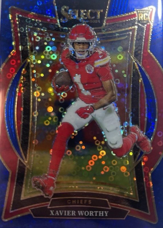 This card is 1 of 253 Xavier Worthy's card variations in the 2024 Select set being tracked by Sports Card Investor, including Club Level, Concourse, Field Level, Premier Level, and Suite Level.