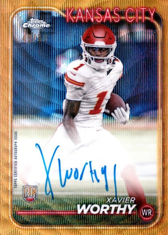 Xavier Worthy RC 2024 Topps Chrome Rookie Auto Gold Wave /50 Redemption Chiefs