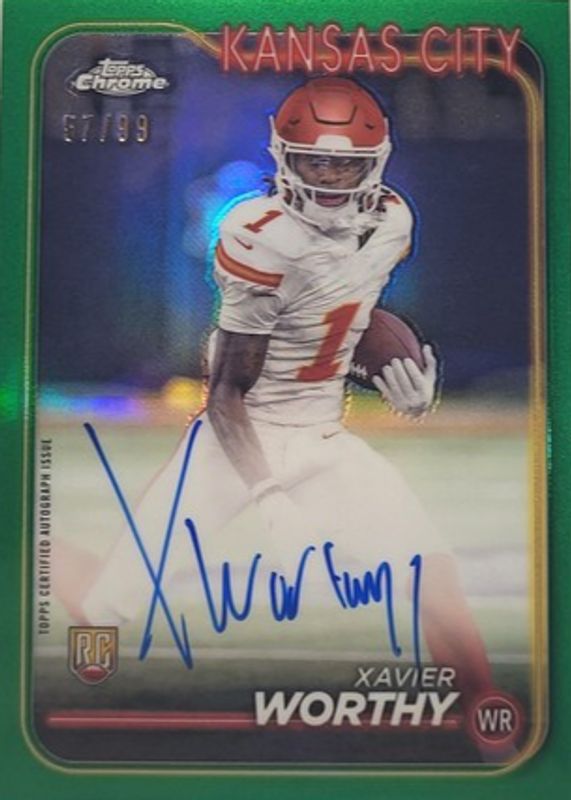 2024 Topps Chrome Xavier Worthy Auto #RA-XWO Green Refractor 95/99 Kansas City