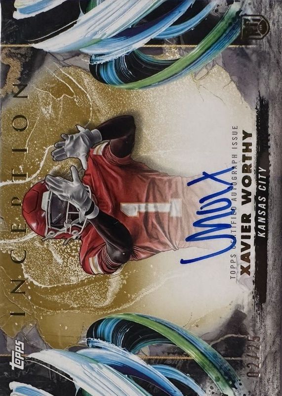The Xavier Worthy 2024 Topps Inception #RA-XW Rookie Autographs Variation - Gold /25 card in Raw condition has not changed in price in the last 30 days and was last sold for $75.00 .