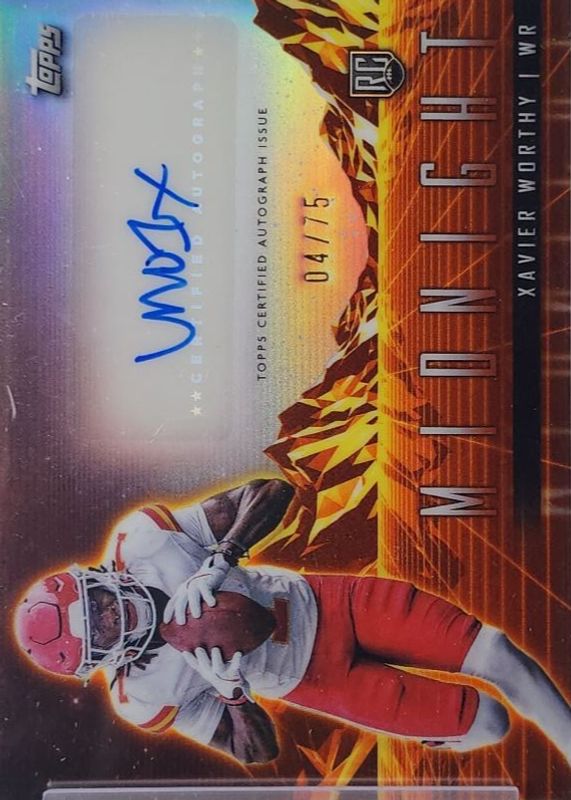 The Xavier Worthy 2024 Topps Midnight #RHS-XW Rookie Horizon Signatures - Dusk /75 card in Raw condition has not changed in price in the last 30 days and was last sold for $29.99 .