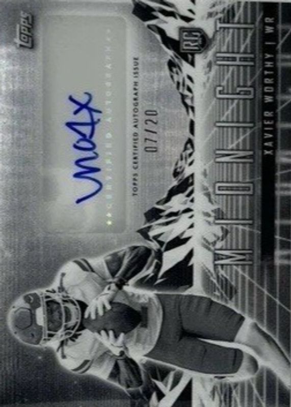 The Xavier Worthy 2024 Topps Midnight #RHS-XW Rookie Horizon Signatures - Equinox /20 card in Raw condition has not changed in price in the last 30 days and was last sold for $38.85 .