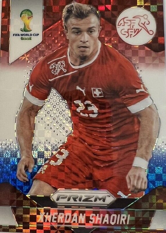 The Xherdan Shaqiri 2014 Prizm World Cup #186 Red White Blue Power Plaid card in Raw condition has not changed in price in the last 30 days and was last sold for $3.48 .