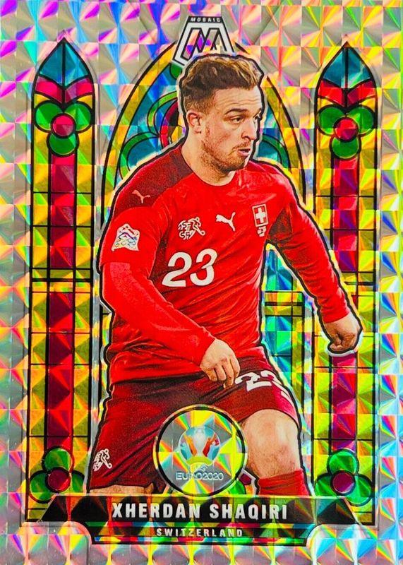 The Xherdan Shaqiri 2021 Mosaic Euro #21 Stained Glass /(SSP) card in Raw condition has not changed in price in the last 30 days and was last sold for $21.51 .