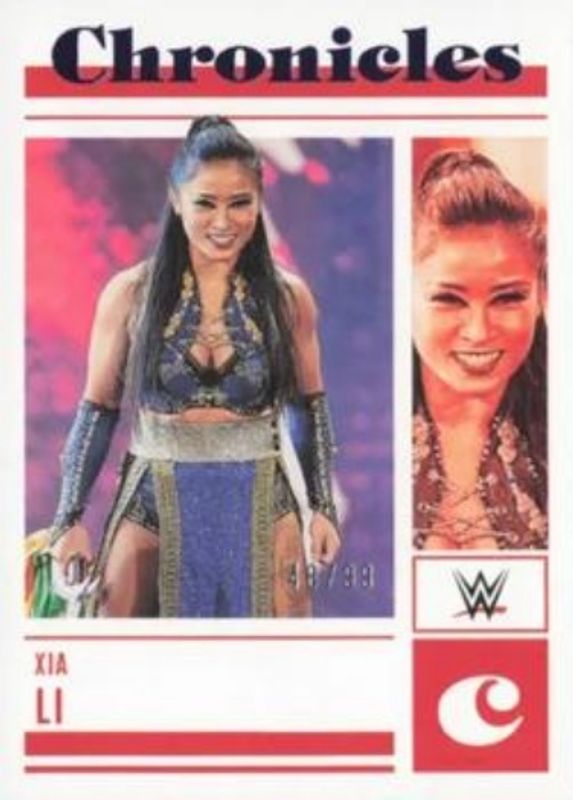 The Xia Li 2023 Chronicles WWE #81 Blue /99 card is 1 of 10 Xia Li's card variations in the 2023 Chronicles WWE set being tracked by Sports Card Investor, including Base, Bronze, Pink /199, Red /199, and Green /75.