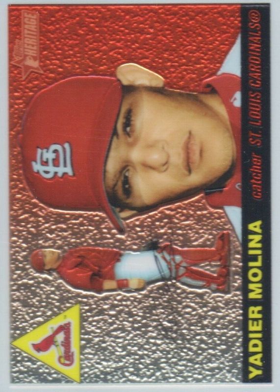 This card is 1 of 4 Yadier Molina's card variations in the 2004 Topps Heritage set being tracked by Sports Card Investor, including Base, Chrome Refractor /555, and Chrome Black Refractor /55.