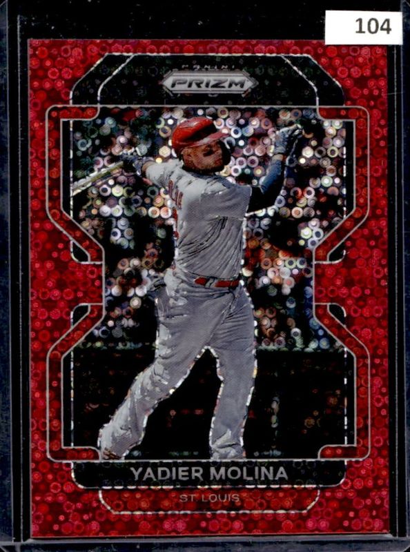 The Yadier Molina 2022 Prizm #175 Red Donut Circles /99 card is 1 of 82 Yadier Molina's card variations in the 2022 Prizm set being tracked by Sports Card Investor, including Base, Blue, Blue Velocity, Carolina Blue, and Cosmic Haze.