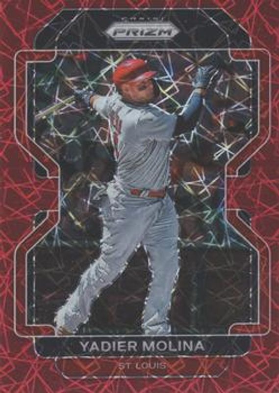 The Yadier Molina 2022 Prizm #175 Red Velocity card is 1 of 82 Yadier Molina's card variations in the 2022 Prizm set being tracked by Sports Card Investor, including Base, Blue, Blue Velocity, Carolina Blue, and Cosmic Haze.
