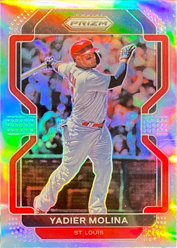 The Yadier Molina 2022 Prizm #175 Silver card is 1 of 82 Yadier Molina's card variations in the 2022 Prizm set being tracked by Sports Card Investor, including Base, Blue, Blue Velocity, Carolina Blue, and Cosmic Haze.
