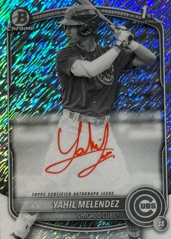 Auctions Ending Soon for Yahil Melendez 2025 Bowman Chrome #CPA-YM Prospect Auto - Black & White Shimmer Refractor (1st) RAW