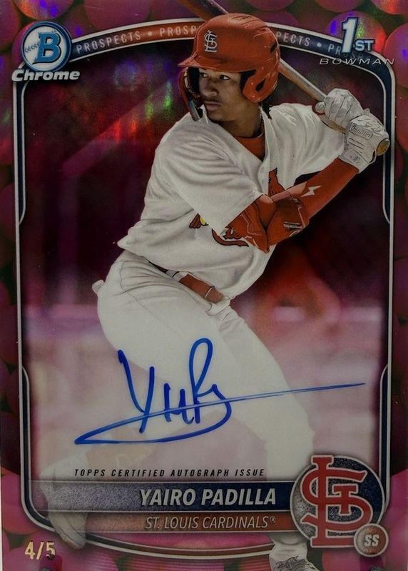 Auctions Ending Soon for Yairo Padilla 2025 Bowman Chrome #CPA-YP Prospect Auto - Gum Ball Refractor /5 (1st) RAW