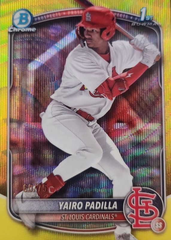 2025 Bowman Chrome Yellow Wave /75 YAIRO PADILLA 1st CARDINALS!
