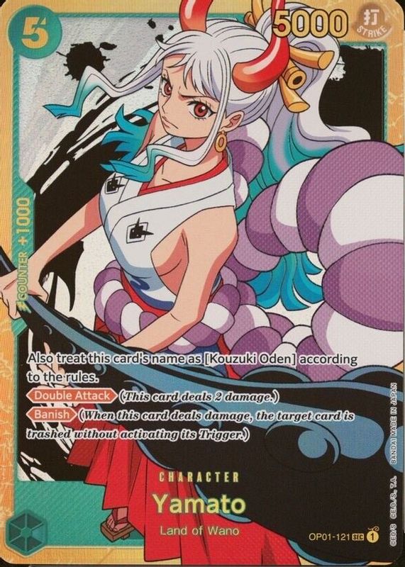 The Yamato 2022 Romance Dawn #OP01-121 Secret Rare card in Raw TCG (Near Mint) condition has moved up $0.01 (+0.1%) in the last 30 days and was last sold for $10.00 .