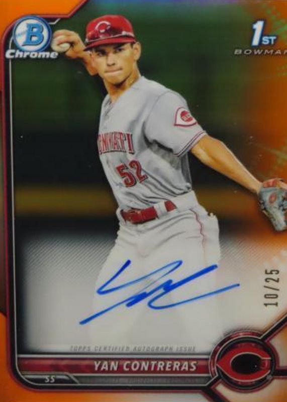Auctions Ending Soon for Yan Contreras 2022 Bowman #CPA-YC Chrome Prospect Auto - Orange Refractor /25 (1st) RAW