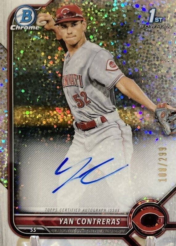 Yan Contreras 2022 Bowman Chrome 1st Speckle Refractor AUTO /299 #CPA-YC - Reds