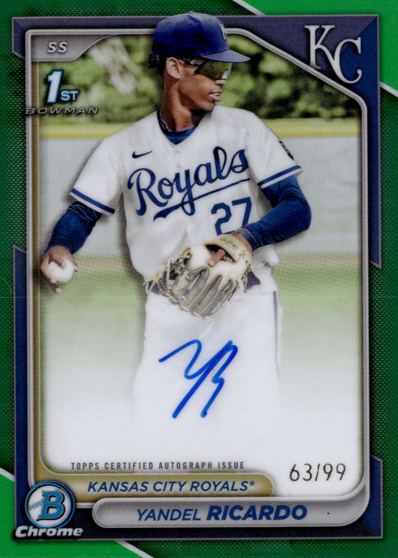 2024 Bowman Chrome Auto 1st Bowman Yandel Ricardo Green Refractor /99 Royals!