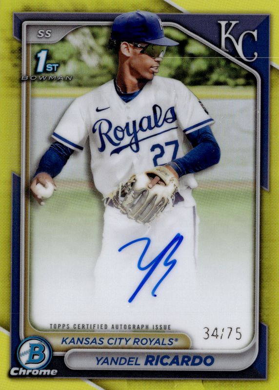 2024 Bowman Chrome Yandel Ricardo Yellow Refractor Auto /75 #CPA-YRI Royals