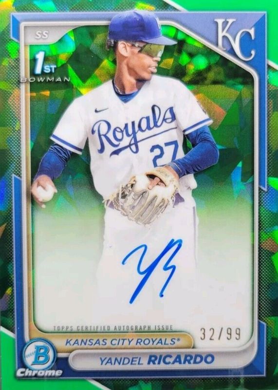 2024 1st Bowman Chrome Sapphire Green Refractor Yandel Ricardo Auto /99 RC SP