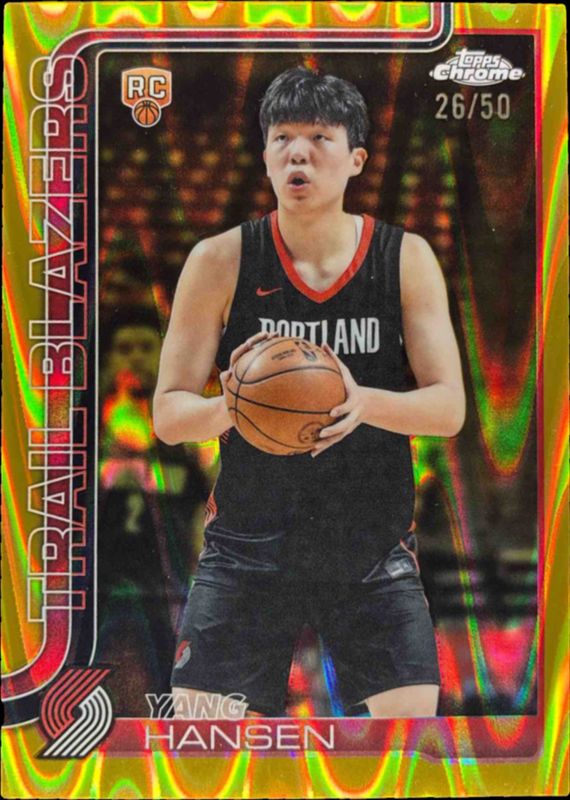 This card is 1 of 233 Yang Hansen's card variations in the 2025 Topps Chrome set being tracked by Sports Card Investor, including Base, Basketball Refractor, Box Set Refractor, Image Variation, and Lightboard Logo Refractor.
