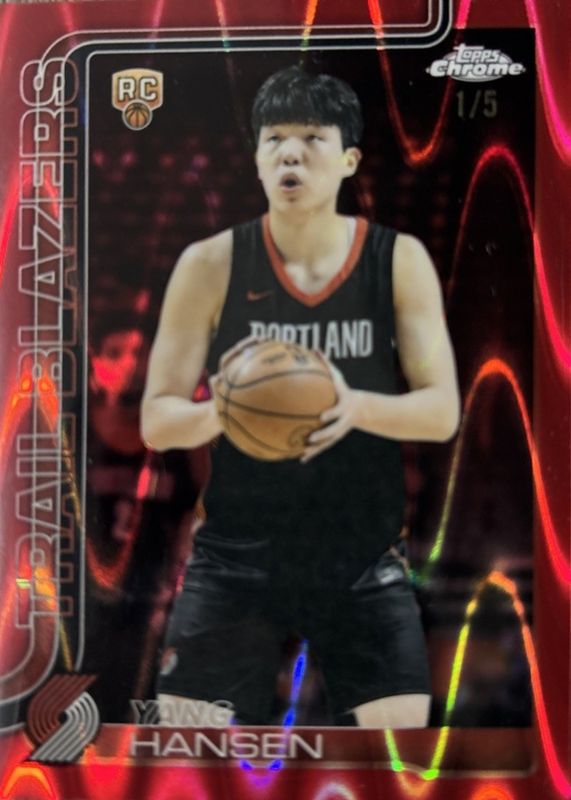 This card is 1 of 233 Yang Hansen's card variations in the 2025 Topps Chrome set being tracked by Sports Card Investor, including Base, Basketball Refractor, Box Set Refractor, Image Variation, and Lightboard Logo Refractor.