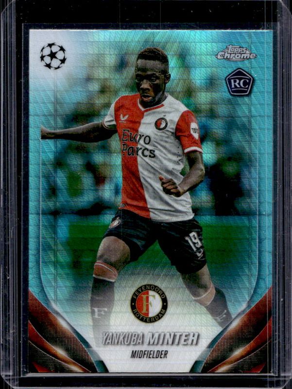 The Yankuba Minteh 2023 Topps Chrome UEFA Club Competitions #165 Aqua Prism Refractor Rookie card is 1 of 31 Yankuba Minteh's card variations in the 2023 Topps Chrome UEFA Club Competitions set being tracked by Sports Card Investor, including Base, Aqua Lava Refractor, Blue Lava Refractor, Gold Lava Refractor, and Neon Green Lava Refractor.