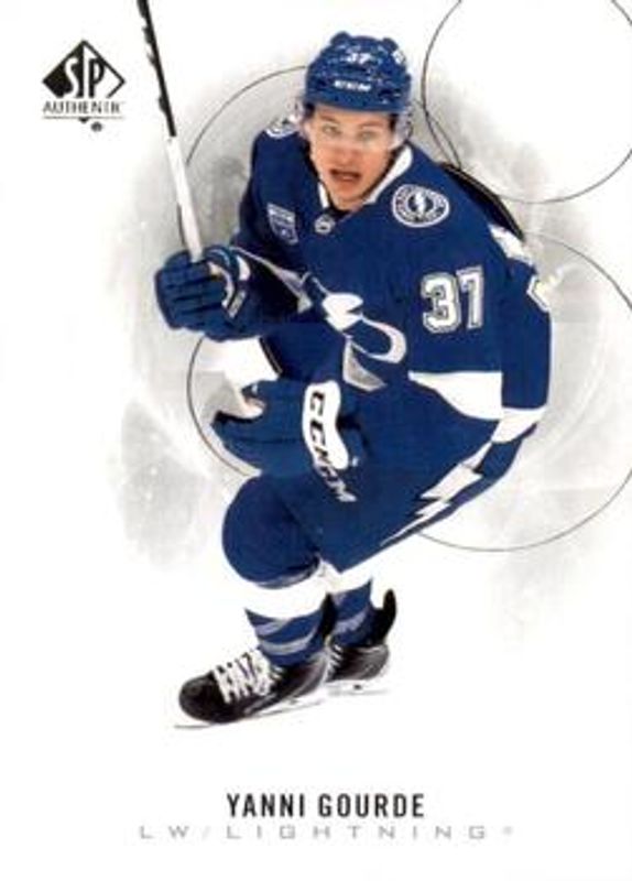 The Yanni Gourde 2020 SP Authentic #86 Base /999 card is 1 of 9 Yanni Gourde's card variations in the 2020 SP Authentic set being tracked by Sports Card Investor, including Black Gold Ink, Limited Autographs, Limited Red, 2000 Retro, and Sign of the Times.