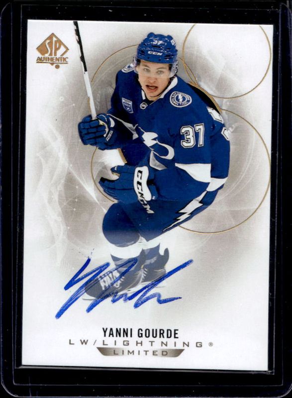 The Yanni Gourde 2020 SP Authentic #86 Limited Autographs card is 1 of 9 Yanni Gourde's card variations in the 2020 SP Authentic set being tracked by Sports Card Investor, including Base /999, Black Gold Ink, Limited Red, 2000 Retro, and Sign of the Times.