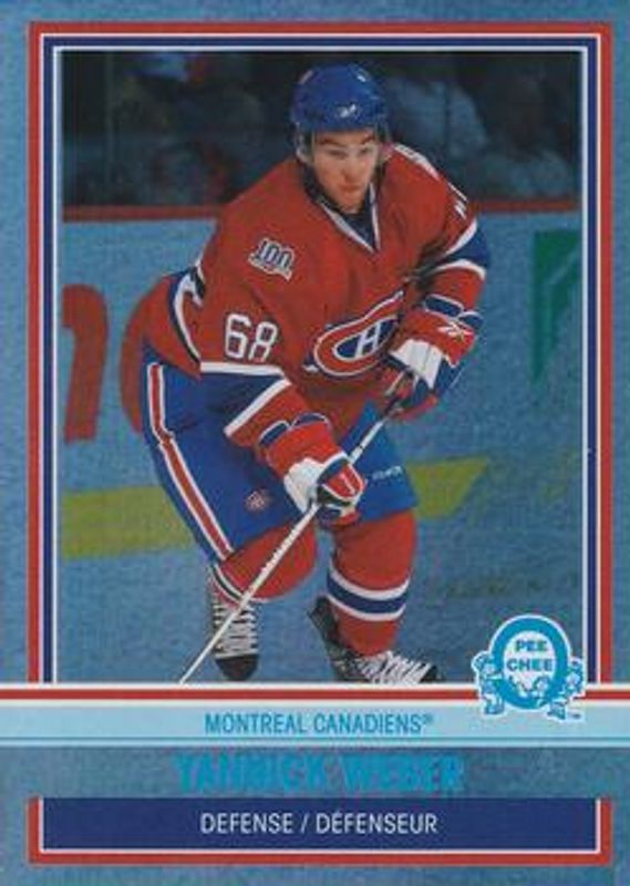 The Yannick Weber 2009 O-Pee-Chee #501 Retro Rainbow /100 Rookie card is 1 of 5 Yannick Weber's card variations in the 2009 O-Pee-Chee set being tracked by Sports Card Investor, including Base, Rainbow, Retro, and Retro Blank Back.