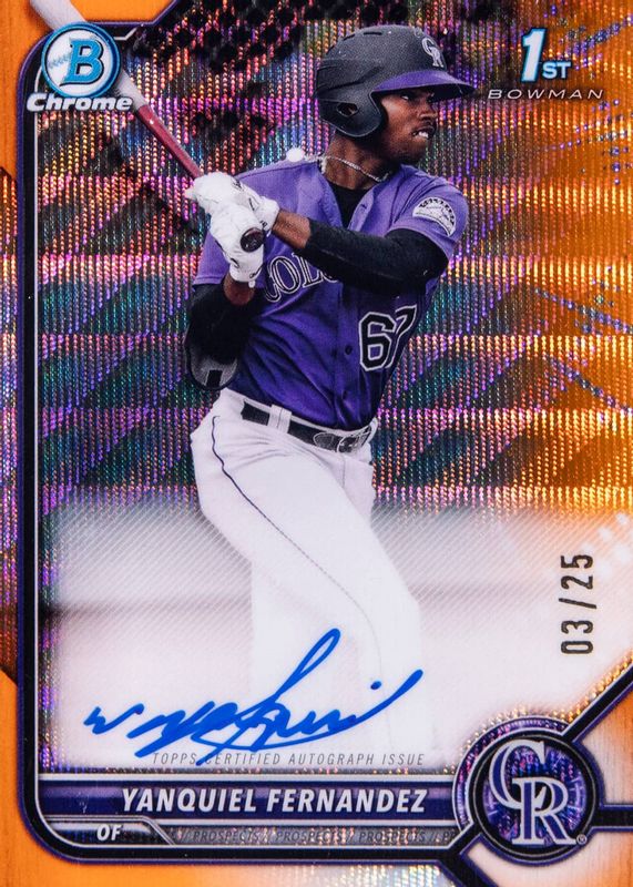 Yanquiel Fernandez 2022 Bowman Chrome #CPA-YFZ Prospect Auto - Orange Wave Refractor /25 (1st) RAW Price Guide