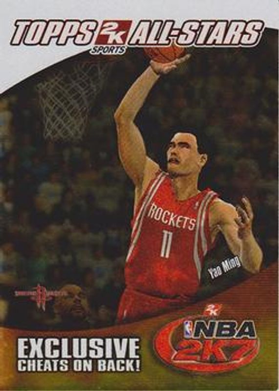 The Yao Ming 2006 Topps #5 2K7 Promotion card is 1 of 11 Yao Ming's card variations in the 2006 Topps set being tracked by Sports Card Investor, including Base, Gold /500, Black /99, Platinum /1, and Clutch City Stars.