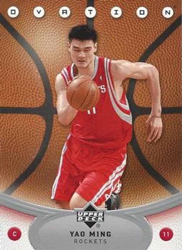 The Yao Ming 2006 Upper Deck Ovation #27 Base /999 card is 1 of 6 Yao Ming's card variations in the 2006 Upper Deck Ovation set being tracked by Sports Card Investor, including Gold /99, Center Stage, Leading Performers, Spotlight Signatures, and Spotlight Signatures Gold /25.
