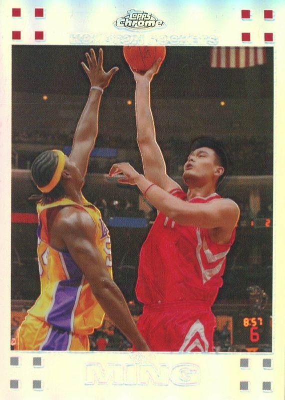 This card is 1 of 9 Yao Ming's card variations in the 2007 Topps Chrome set being tracked by Sports Card Investor, including Orange Refractor /199, White Refractor /99, X-Fractor /50, 1957-58 Variation - Refractor /999, and 1957-58 Variation - Orange Refractor /199.