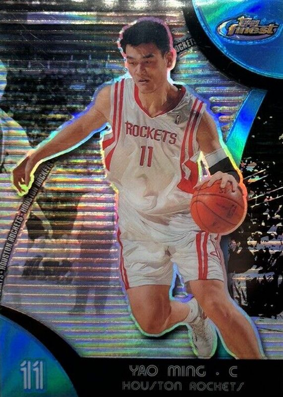 This card is 1 of 6 Yao Ming's card variations in the 2007 Topps Finest set being tracked by Sports Card Investor, including Refractor, Green Refractor /149, Black Refractor /75, Gold Refractor /25, and X-Fractor /15.