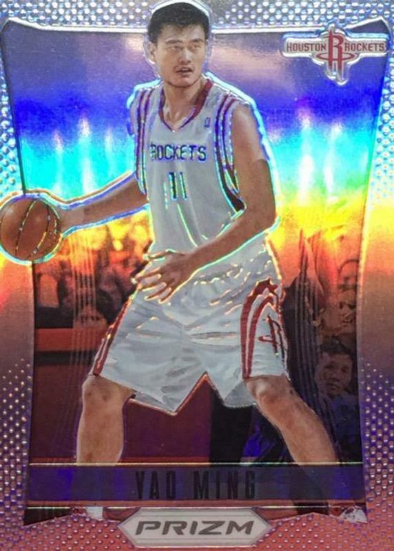 This card is 1 of 4 Yao Ming's card variations in the 2012 Prizm set being tracked by Sports Card Investor, including Base, Green, and Gold /10.