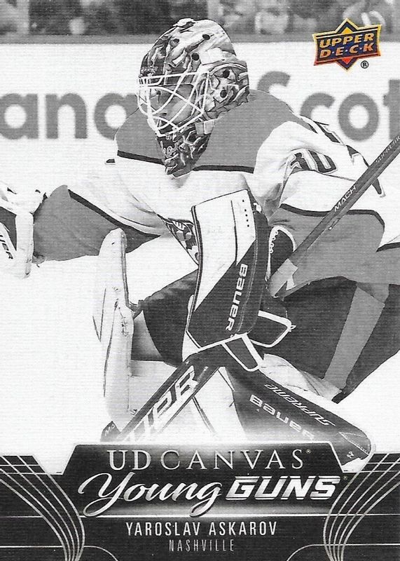 The Yaroslav Askarov 2023 Upper Deck #C111 Young Guns Canvas - Black & White Rookie card in Raw condition has not changed in price in the last 30 days and was last sold for $21.10 .