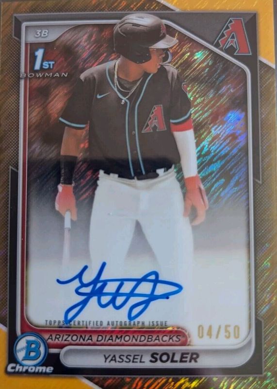 2024 Bowman Chrome HTA Yassel Soler 1st Gold Shimmer Auto /50 CA-YSO SSP Arizona