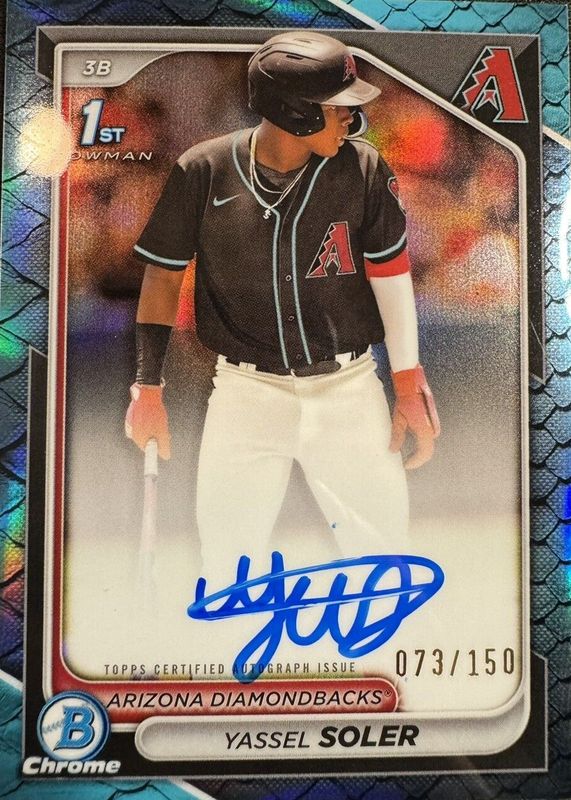 2024 Yassel Soler 1st Bowman Chrome Auto Blue Reptilian /150 Diamondbacks