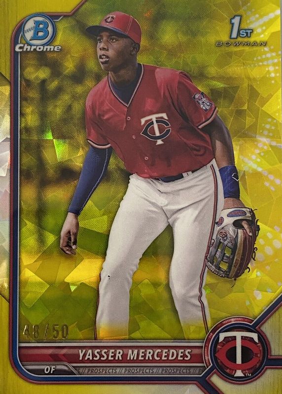 The Yasser Mercedes 2022 Bowman Chrome Sapphire Edition #BCP-171 Prospects - Yellow /50 (1st) card in Raw condition has not changed in price in the last 30 days and was last sold for $76.00 .