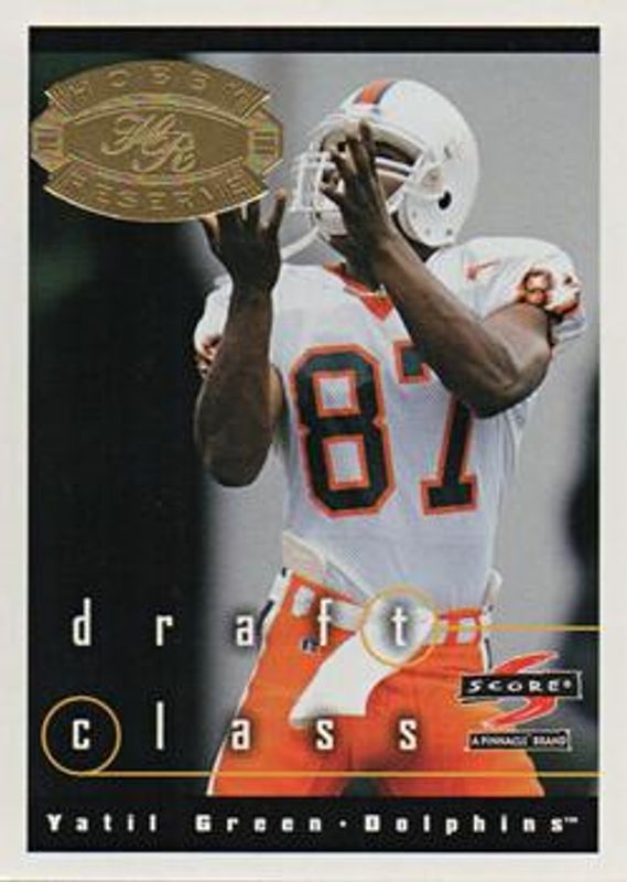 The Yatil Green 1997 Score Hobby Reserve #307 Base card is 1 of 2 Yatil Green's card variations in the 1997 Score Hobby Reserve set being tracked by Sports Card Investor, including Reserve Collection.